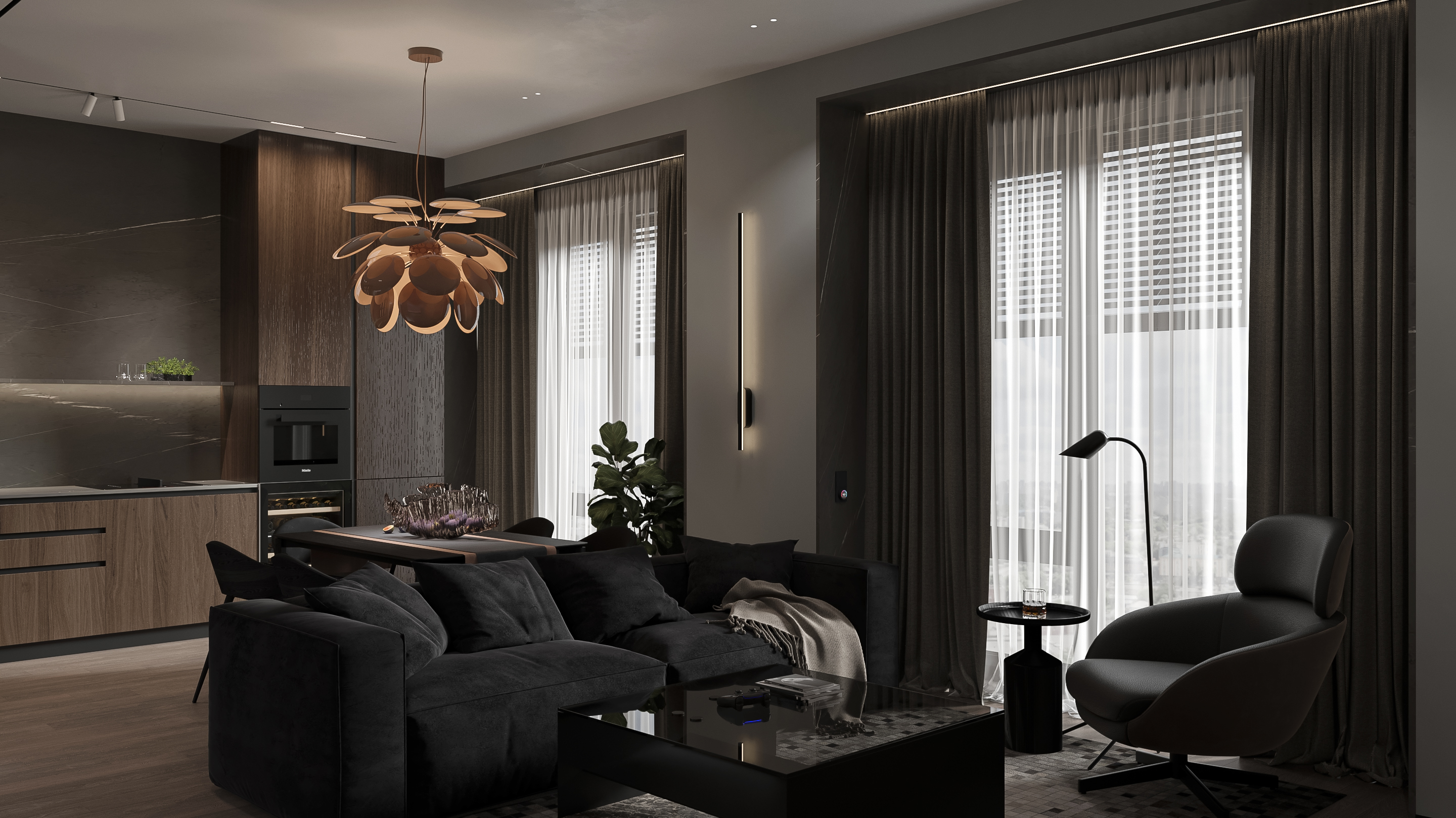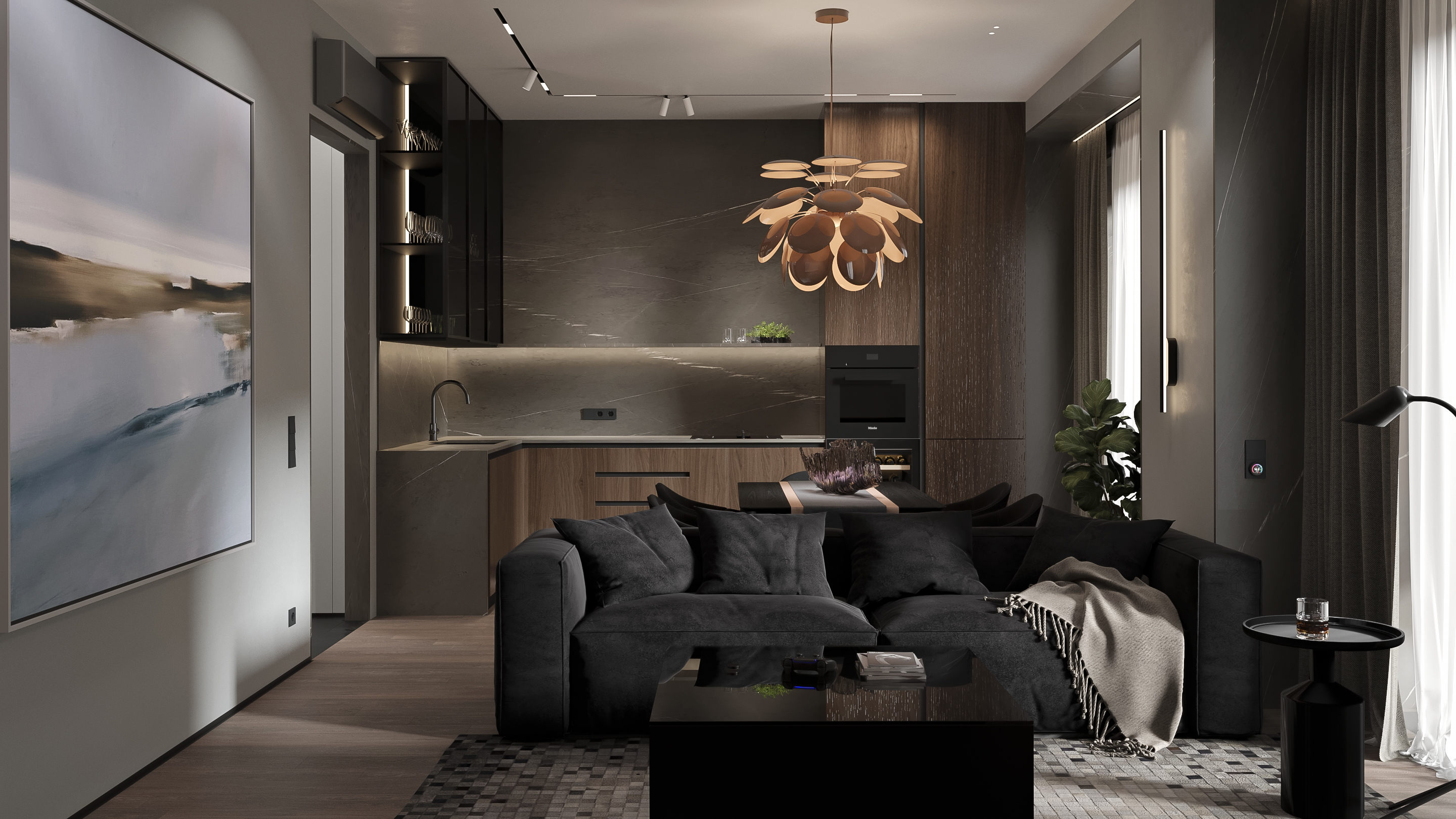 В целом, интерьер квартиры создает впечатление стильного и гармоничного пространства, где каждая деталь находится на своём месте, и где удобно проводить время с близкими и друзьями, наслаждаясь атмосферой домашнего уюта и стиля.