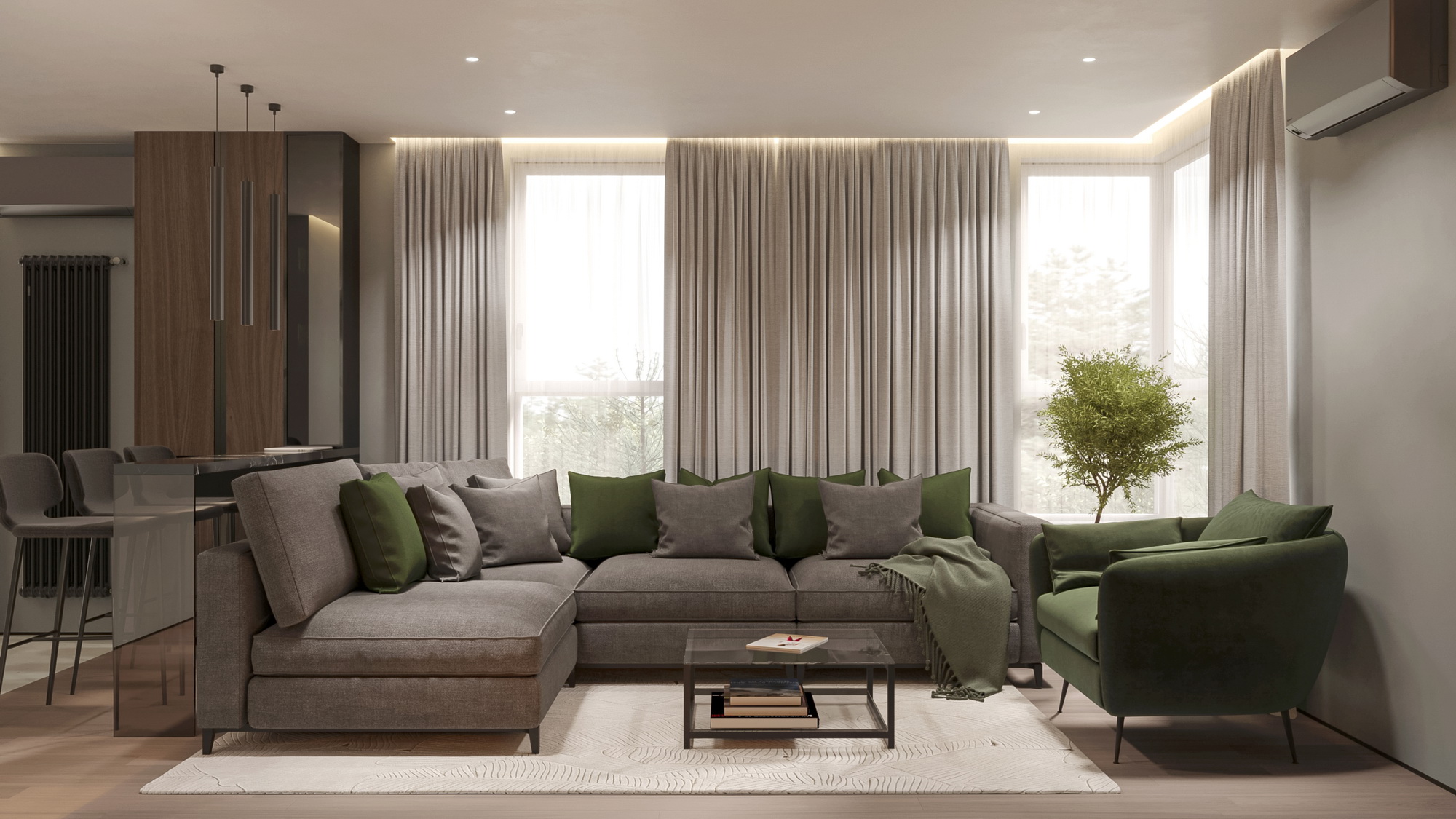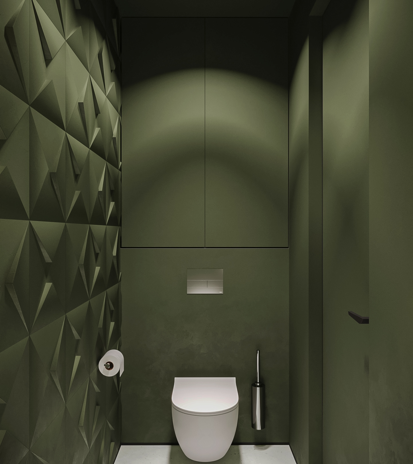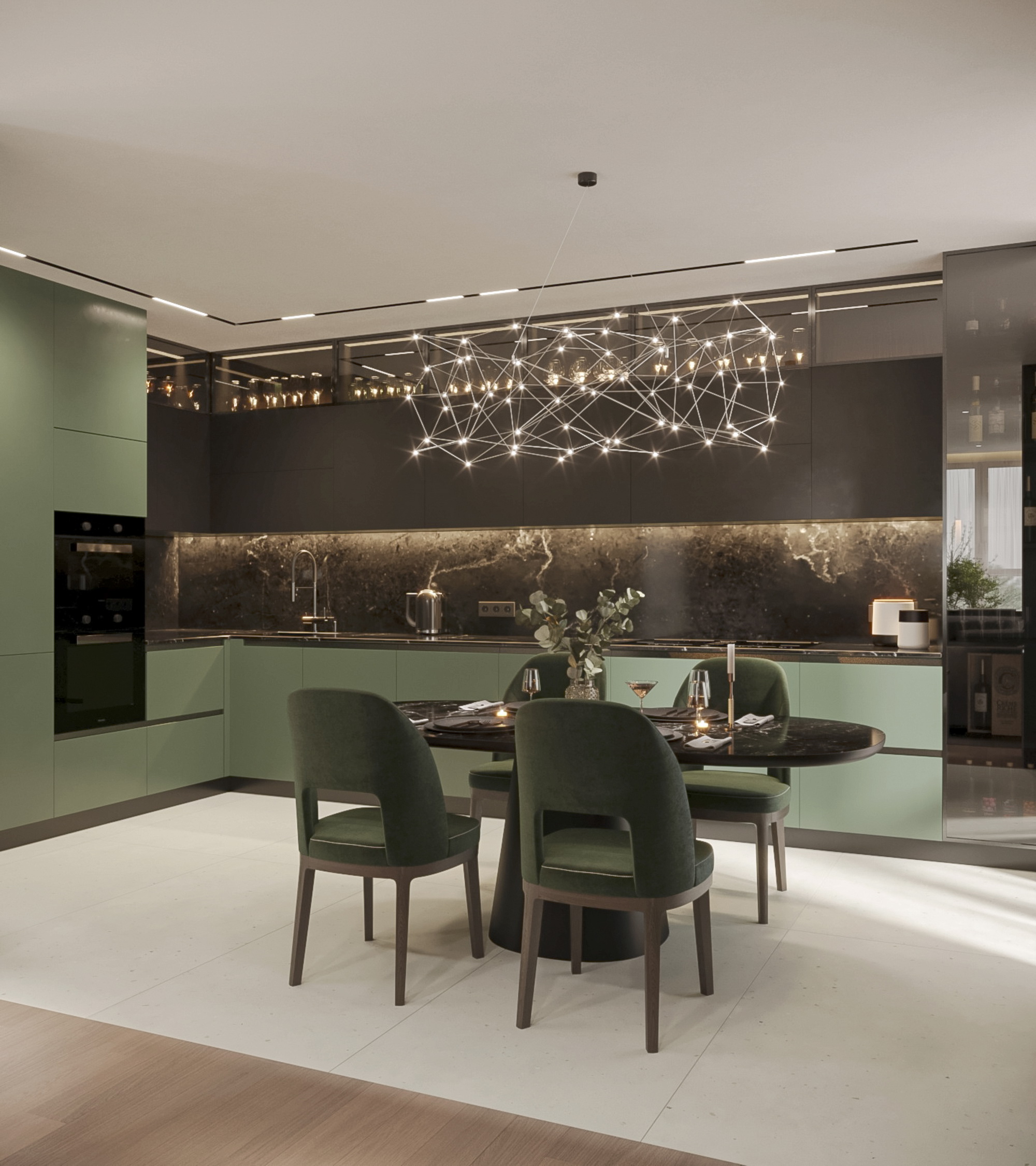 Пожеланием заказчика было создание интерьера преимущественно в глубоких зелёных тонах, в которых каждый член семьи будет чувствовать себя комфортно и спокойно.