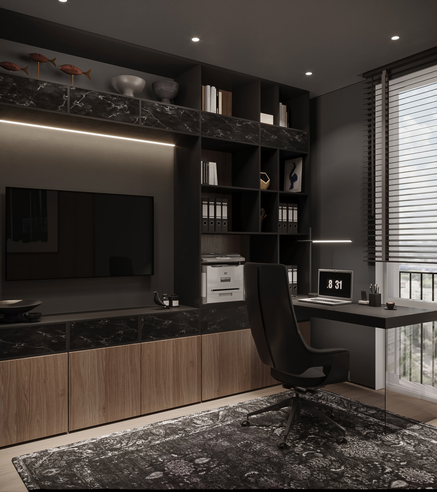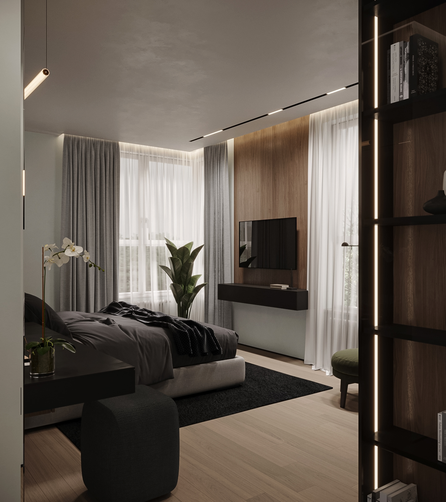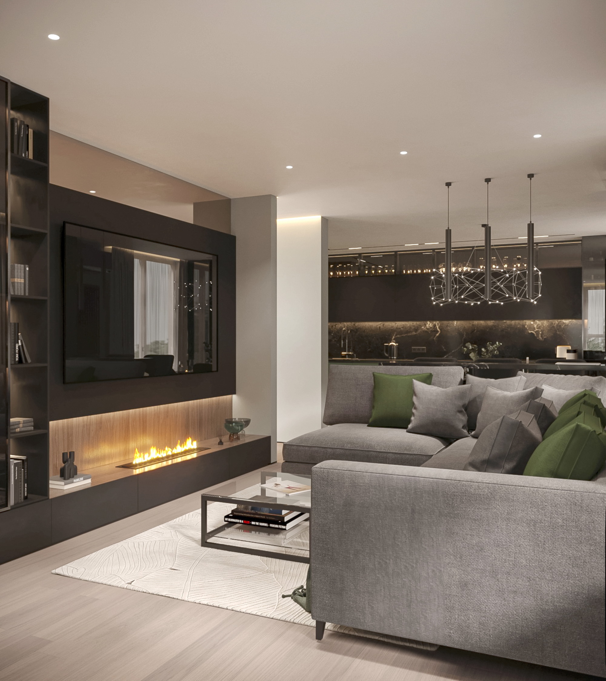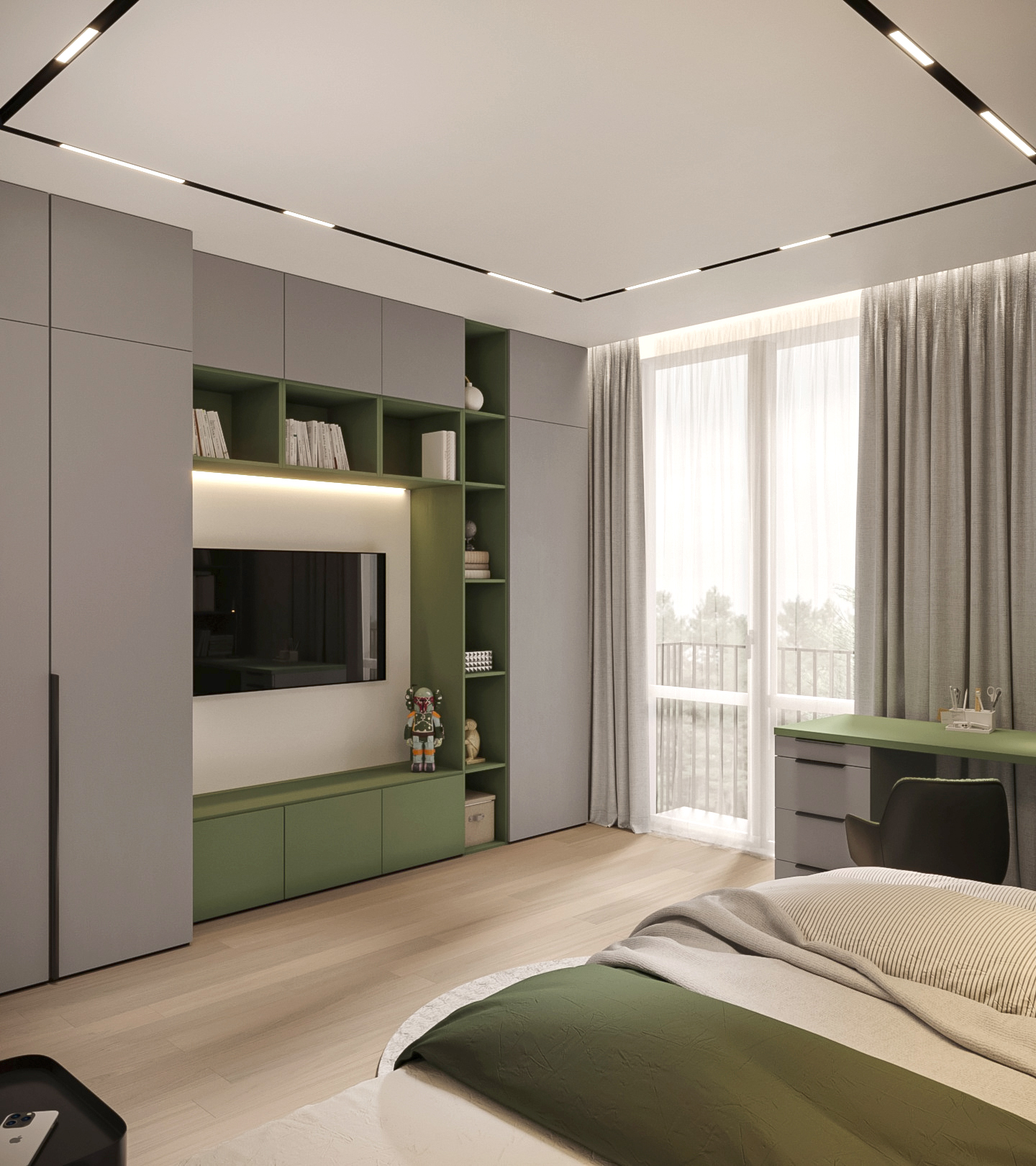 Пожеланием заказчика было создание интерьера преимущественно в глубоких зелёных тонах, в которых каждый член семьи будет чувствовать себя комфортно и спокойно.