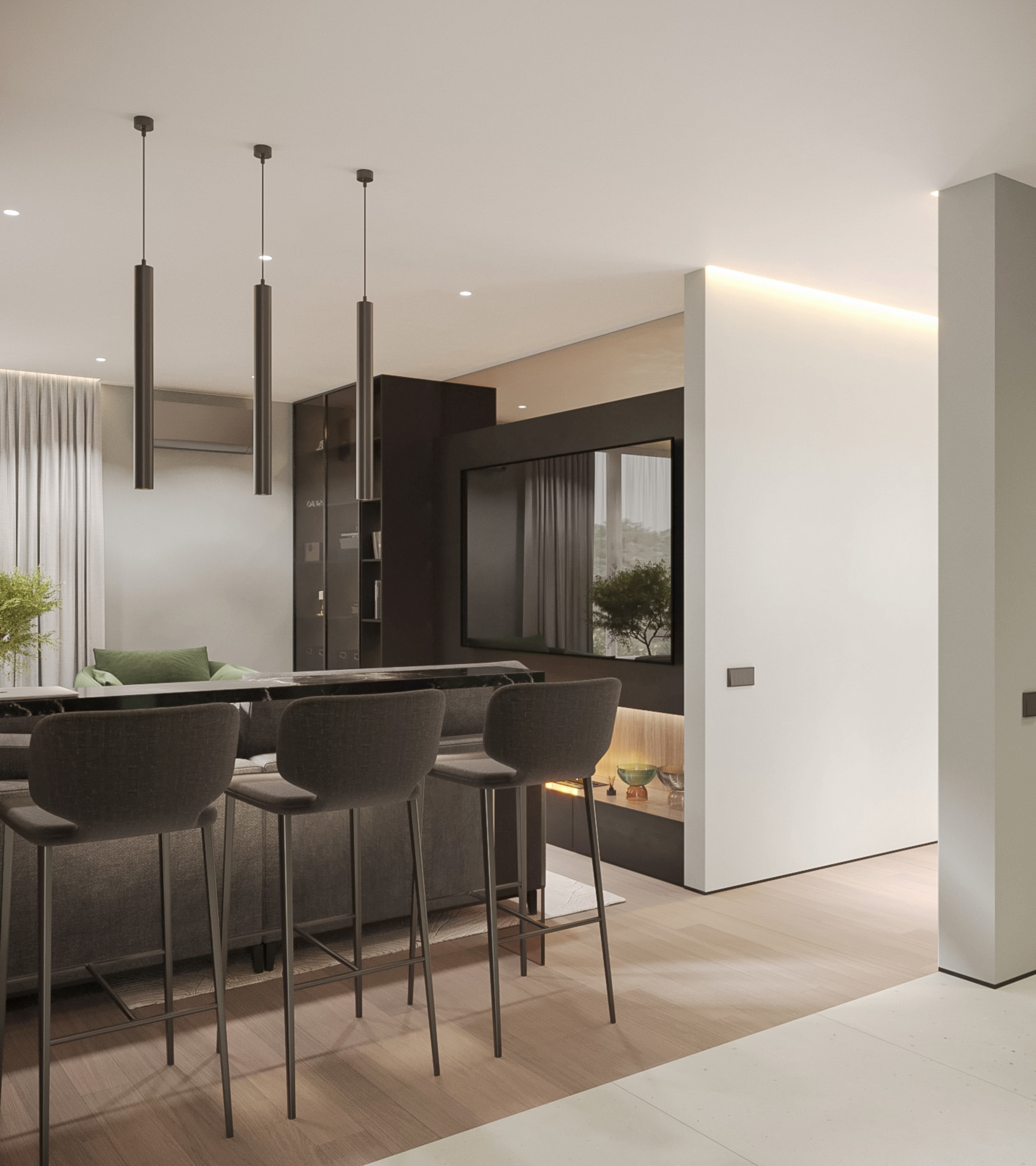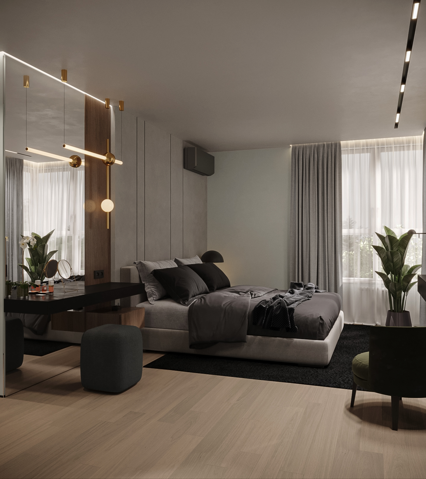 Интерьер пятикомнатной квартиры для семьи из четырёх человек.