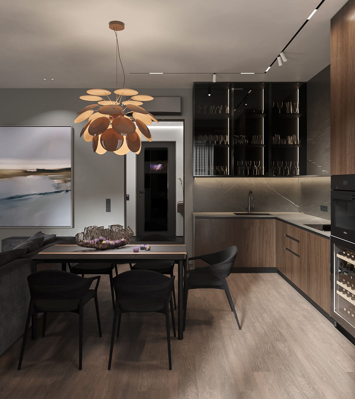 В целом, интерьер квартиры создает впечатление стильного и гармоничного пространства, где каждая деталь находится на своём месте, и где удобно проводить время с близкими и друзьями, наслаждаясь атмосферой домашнего уюта и стиля.